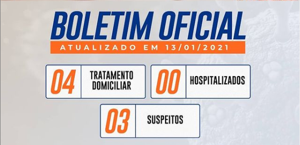 Segue boletim oficial atualizado em 13/01/2021. Está em suas mãos evitar que o Coronavírus se espalhe!